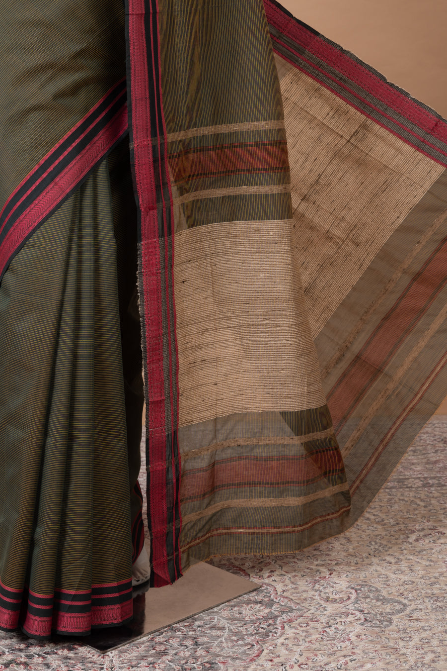 Gulbahar Maheswari with maroon border – Moss Green